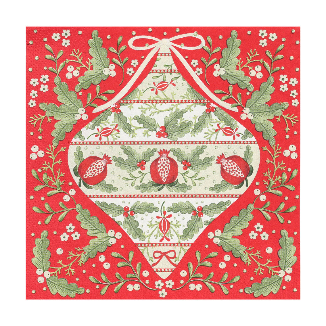 Set the table with storybook charm. These richly patterned red napkins feature an eastern folk art design with a festive bauble design. Made from recycled paper and plastic-free, they’re a feel-good choice for Christmas feasts and winter gatherings.