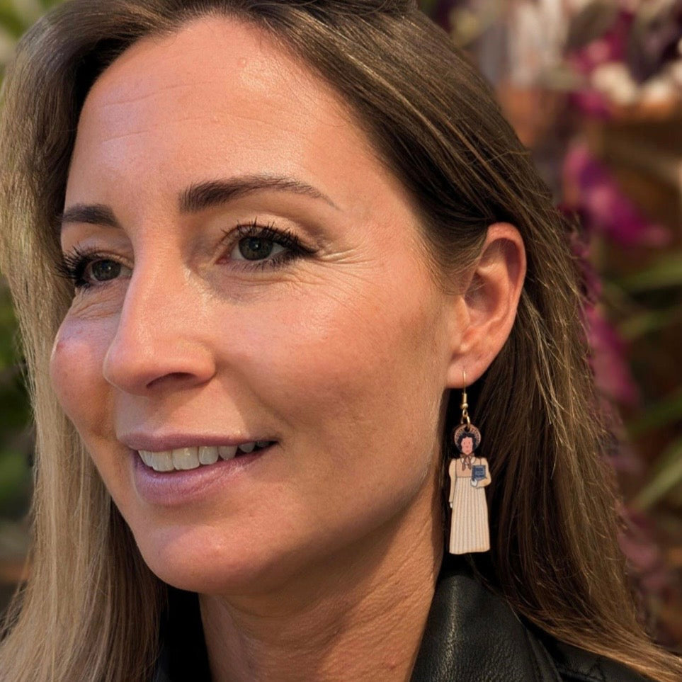 Part of Alison Gardiner’s Jane Austen collection, these charming earrings feature Jane Austen carrying one of her eponymous books. These have been designed and made in the UK to celebrate the 250th anniversary of Jane Austen's birth. Let your courage rise with these easy to wear accessories and perhaps Jane will whisper wisdom in your ear!